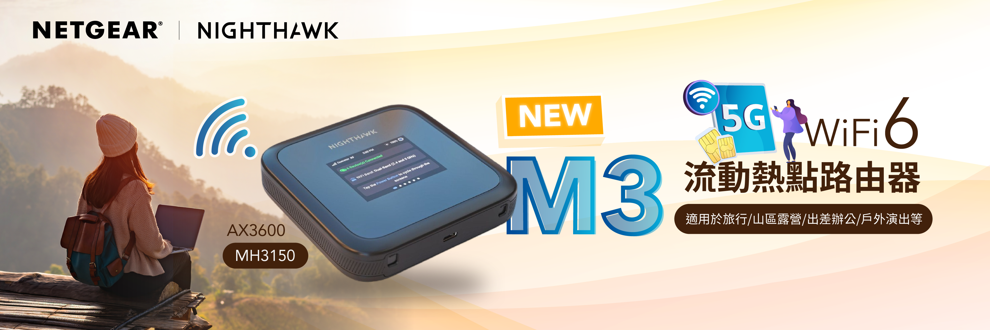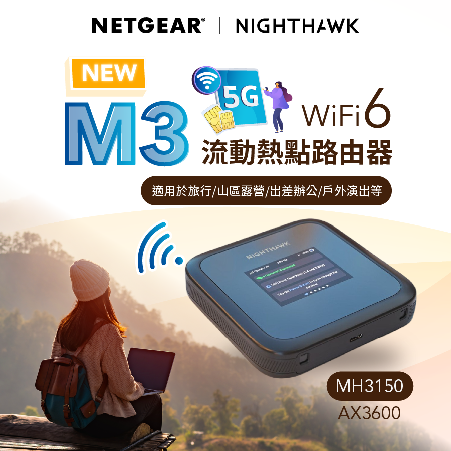 NETGEAR Nighthawk (MH3150) M3 5G Sub 6 AX3600 WiFi 6 流動熱點,5Gbps USB-C | 2.4吋 LCD