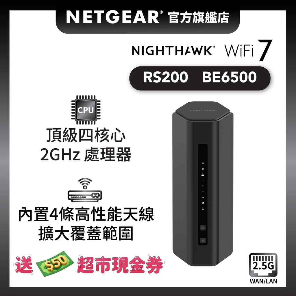 [Nighthawk 雙頻WiFi7 BE6500 無線路由器 (RS200)